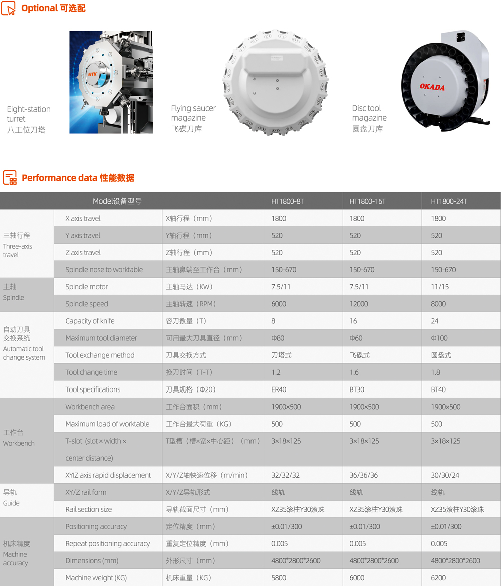 This machine tool adopts high-speed knife tower change structure,compact shape,with fast knife change,high processing efficiency,the characteristics of the province,especialy suitable for auto-moth,power tools,valves,and other industries parts driling,boring,miling,attack eficient processing.